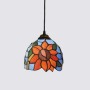 Blivuself Tiffany Style Stained Glass 6-Inch Blue Flowers Garden Design Chandelier European And American Retro Casual Style Suitable For Living Room, Dining Room, Bedroom, Bar And Other Indoor Home Decoration 6-Inch Blue Sunflower - Black Line Chandelier OFP1030