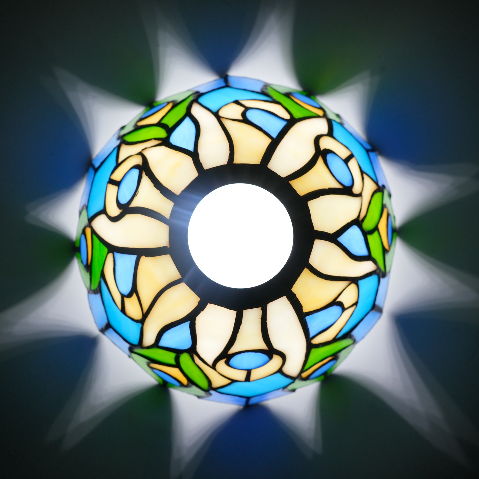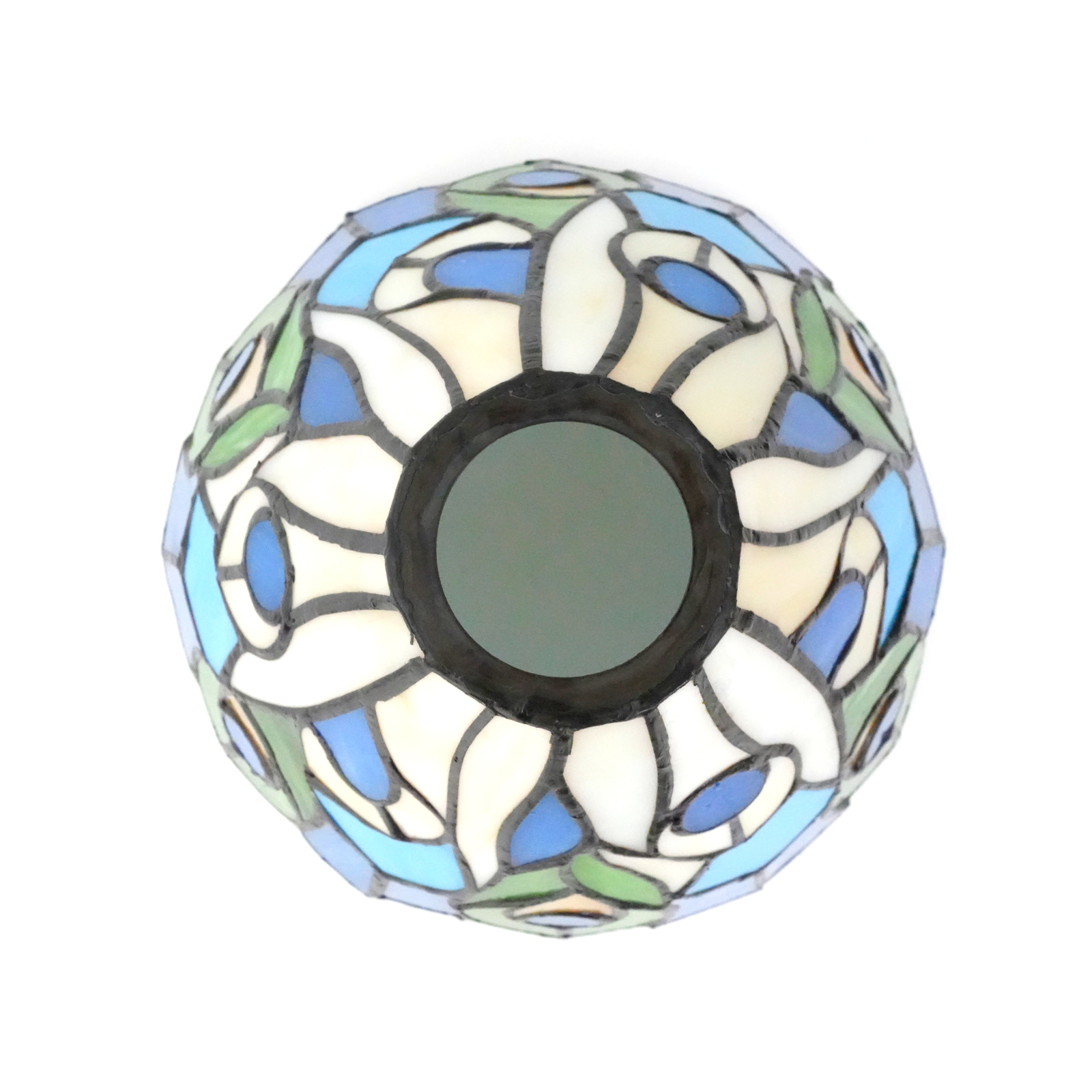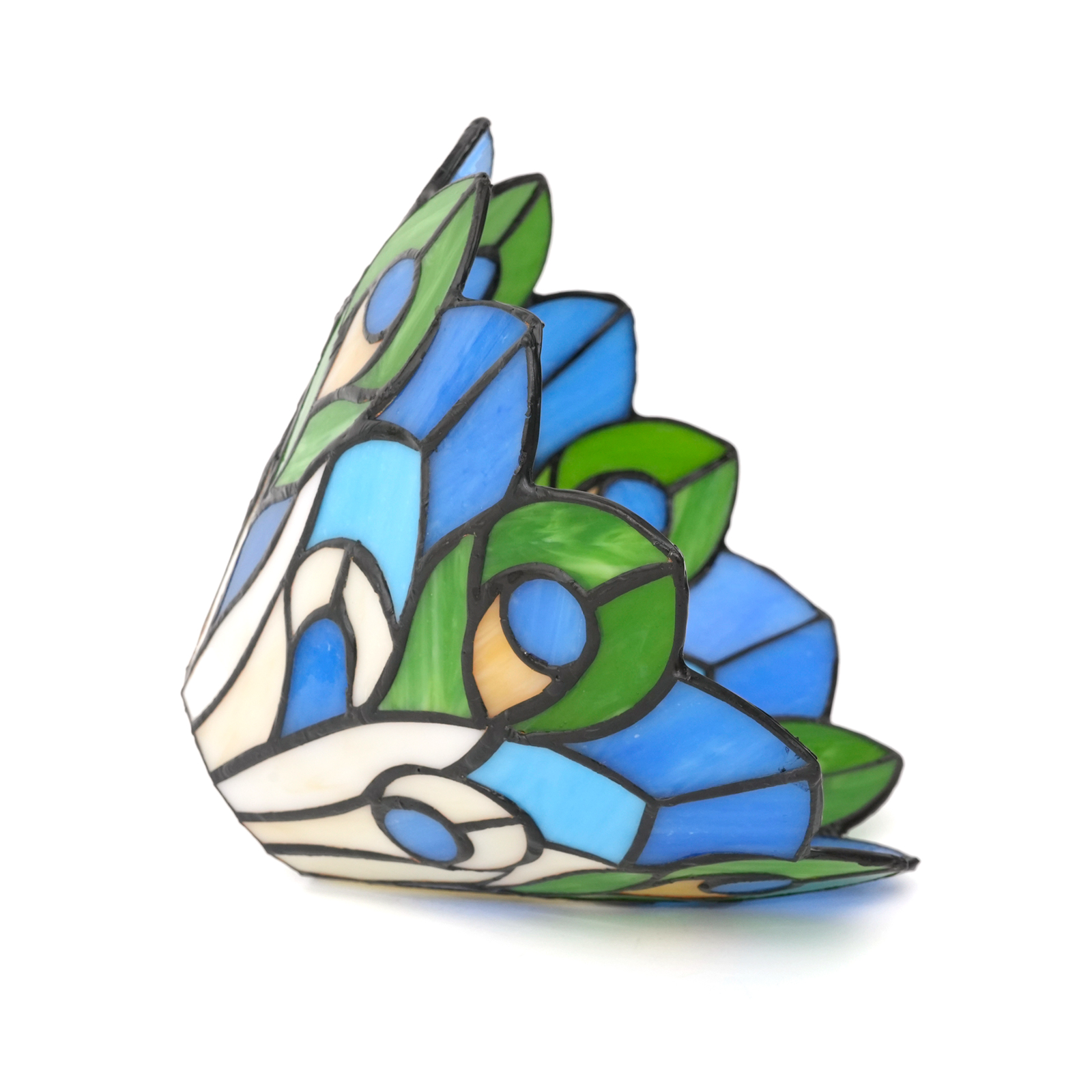 Inheriting the classic Tiffany craftsmanship, each piece of colored glass is carefully selected and cut, and then meticulously pieced together by skilled artisans. The 8-inch lampshade presents a pattern as brilliant as the tail feathers of a peacock. The blue and green interwoven feathers are paired with dynamic dots, creating a colorful and layered look. The exquisite metal frame Outlines the shape, making the entire lampshade look like a beautiful work of art and endowing the lamp with a unique soul.