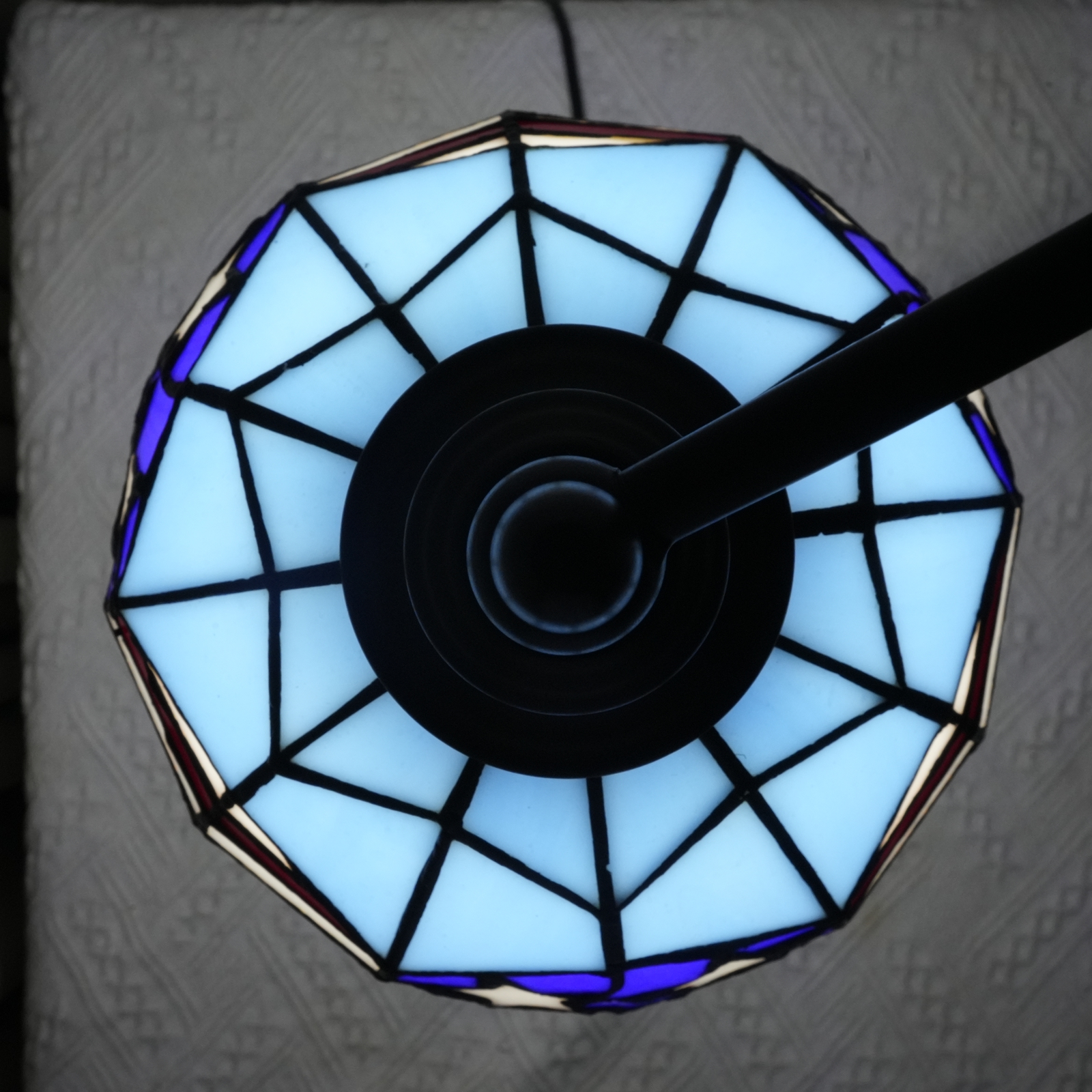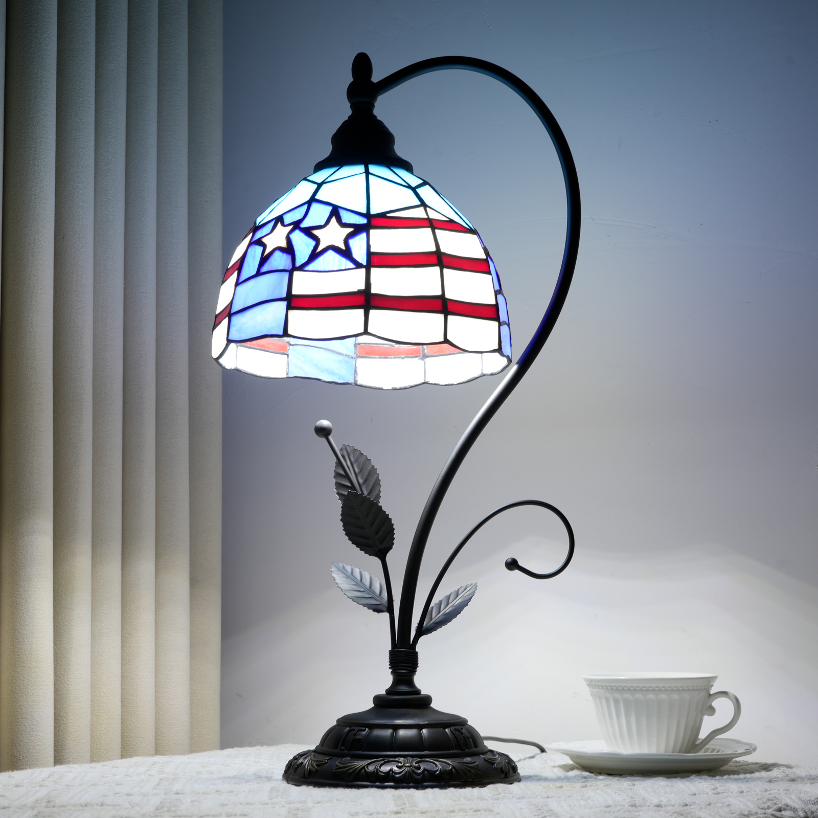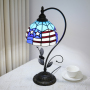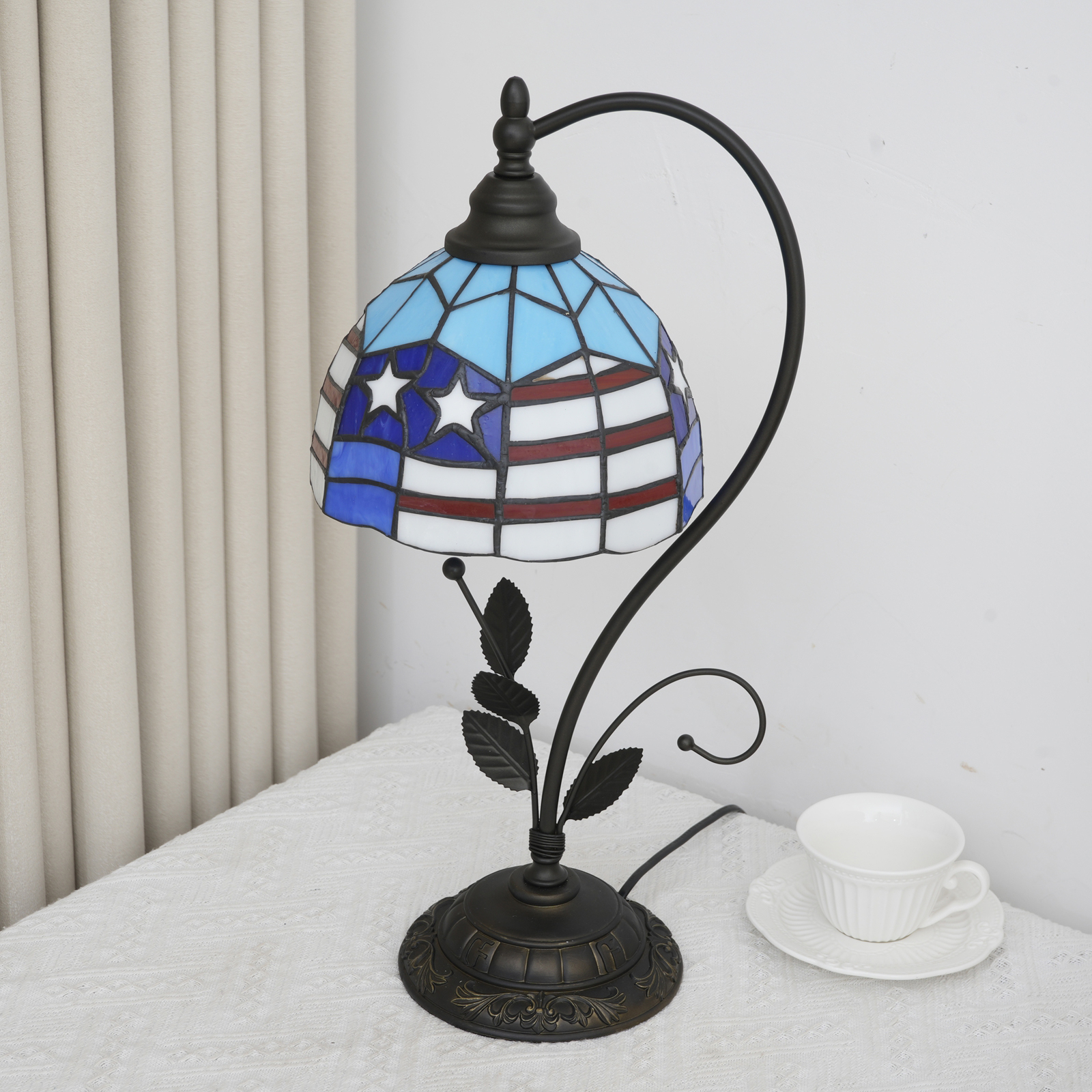 The lampshade is made of colored Stained glass (Stained glass), with blue as the main color, complemented by white stars and red and white stripes, presenting a visual effect similar to the national flag, highly recognizable. Each piece of glass has been meticulously cut and pieced together. Under the illumination of lights, it emits a colorful and soft glow, creating a warm and romantic atmosphere.