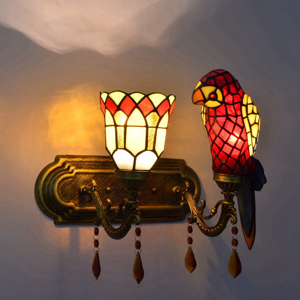 Product name: Red Parrot flowers edge - double head crystal wall lamp