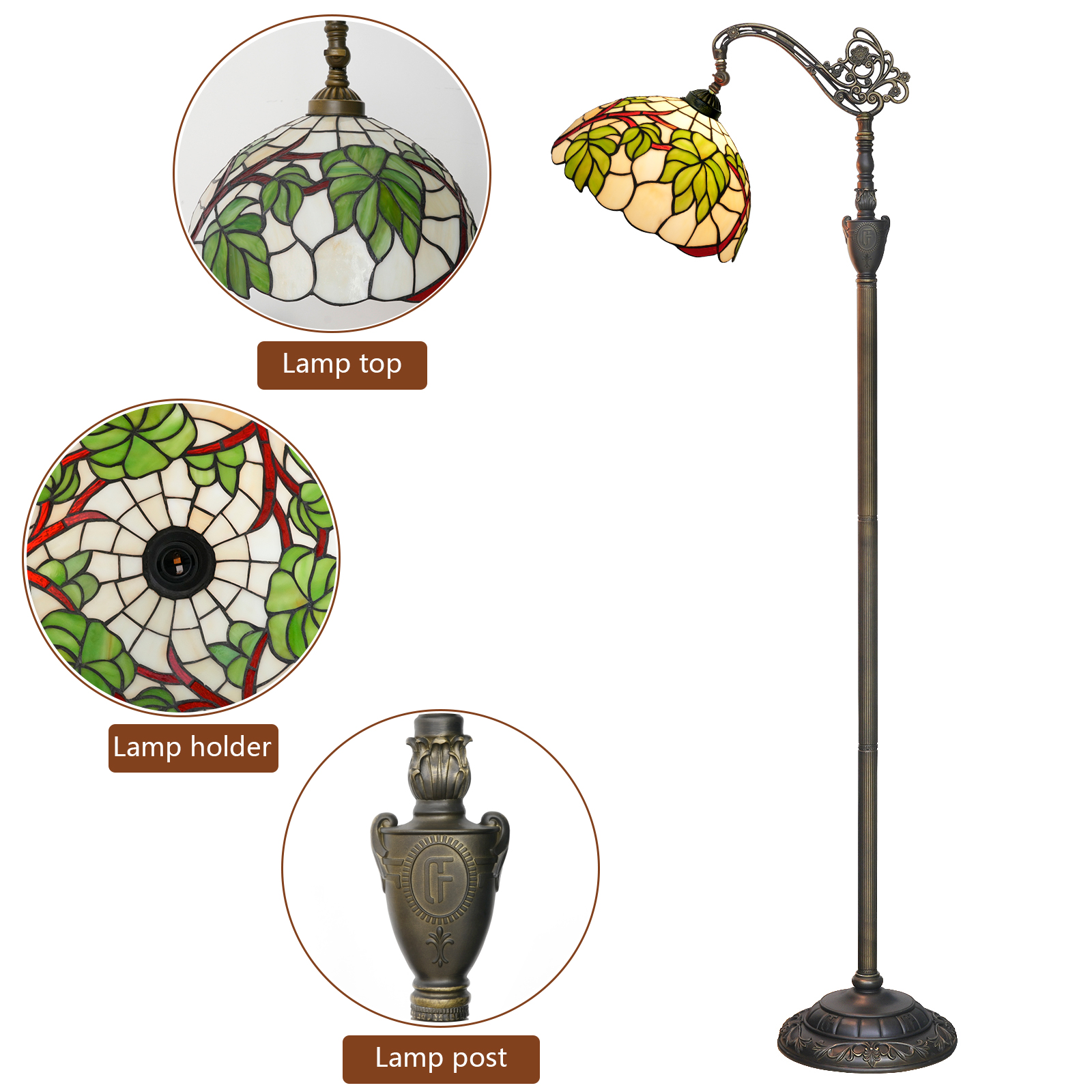 Product Name: Tiffany 12-inch Grape Leaf Floor Lamp