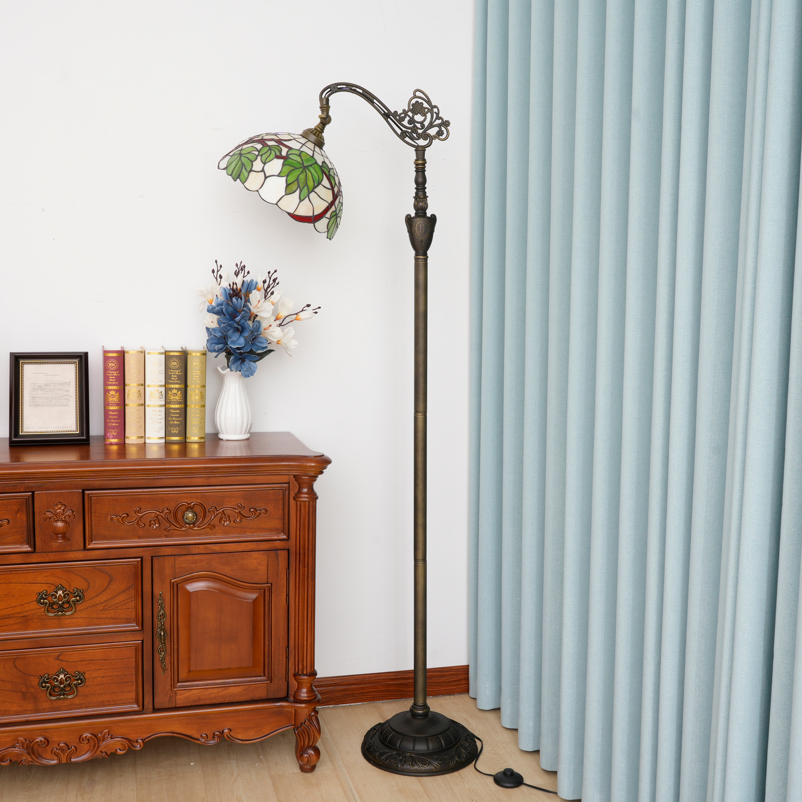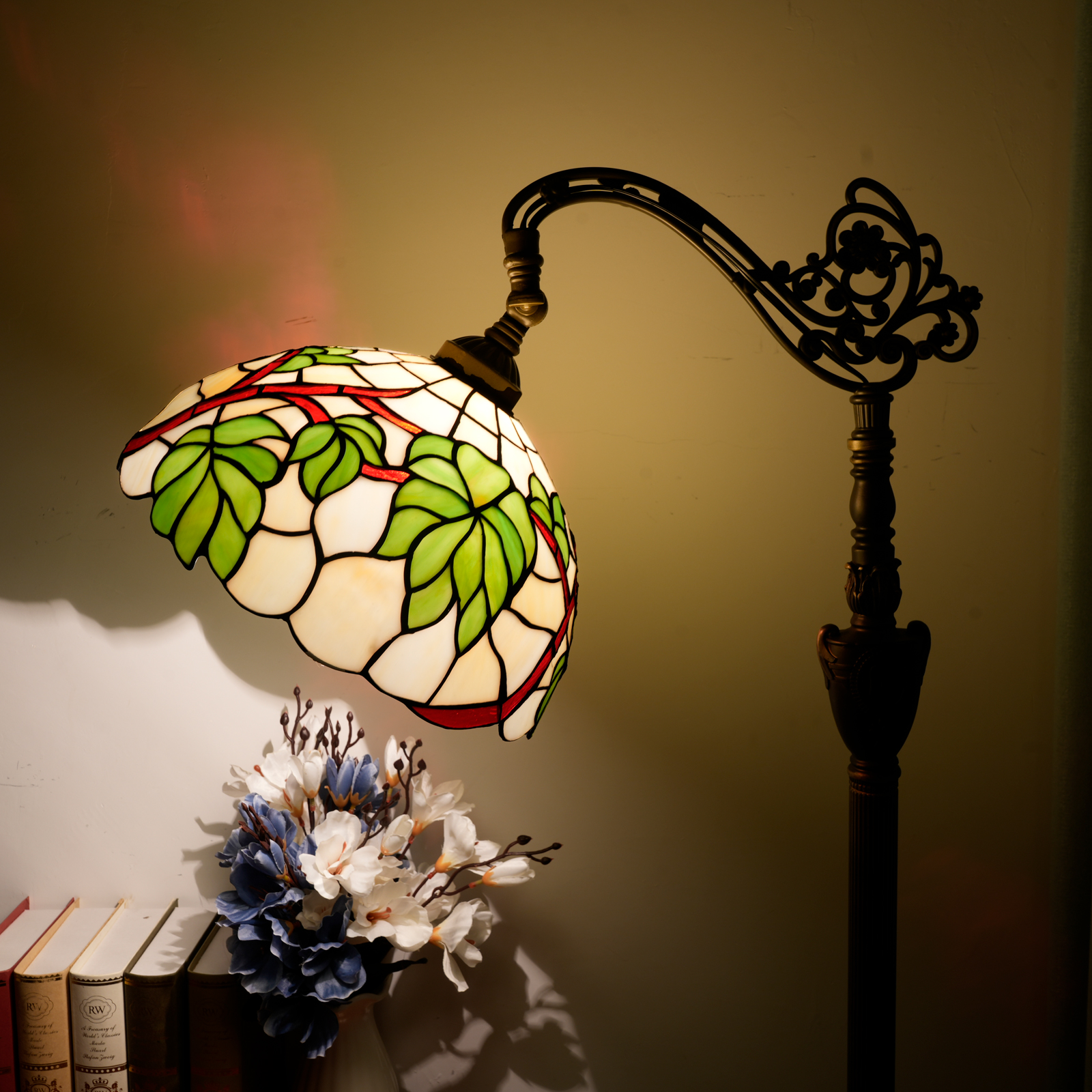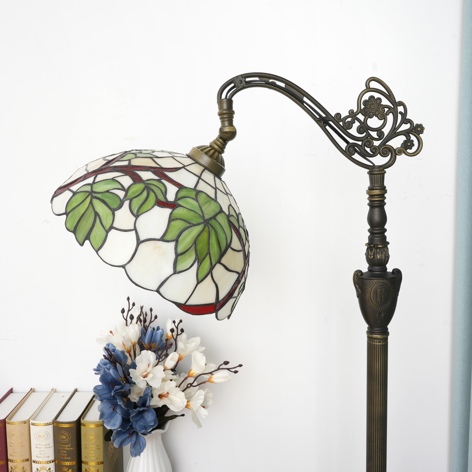 Blivuself Tiffany Floor Lamp Upright Antique Floor Lamp Adjustable Warm Light Reading Lamp Pastoral Style Grape Leaf Stained Glass Lamp Suitable For Bedroom Living Room Study Office And Other Tiffany Style Retro Home Decoration Classical Art Gifts OFX033