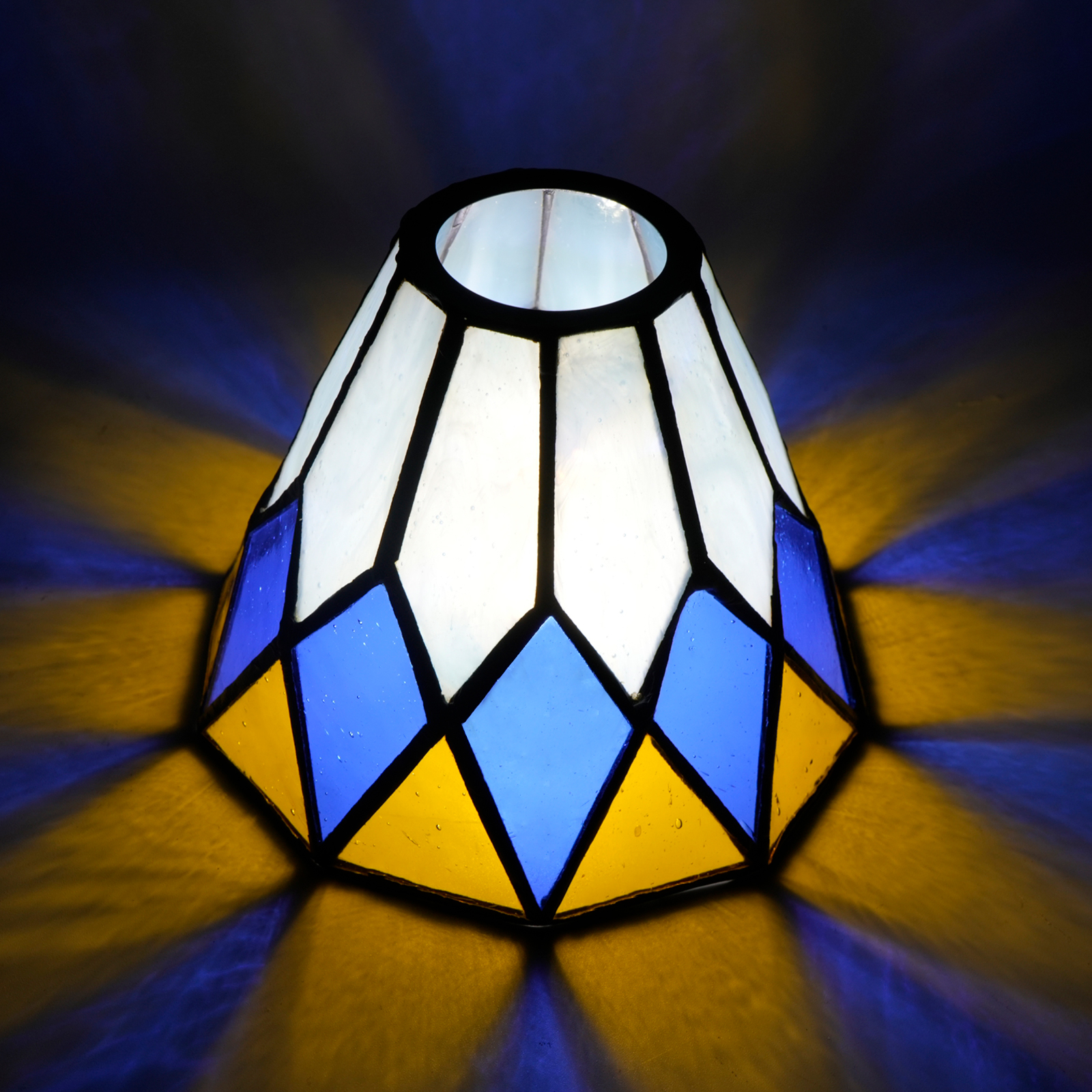 Blivuself Tiffany Style Handmade Creative Stained Glass Lampshade 6 Inch Blue Through Diamond Fit For Traditional Retro Style Home Decoration Classical Art Craft (Big Mouth) OFL233D