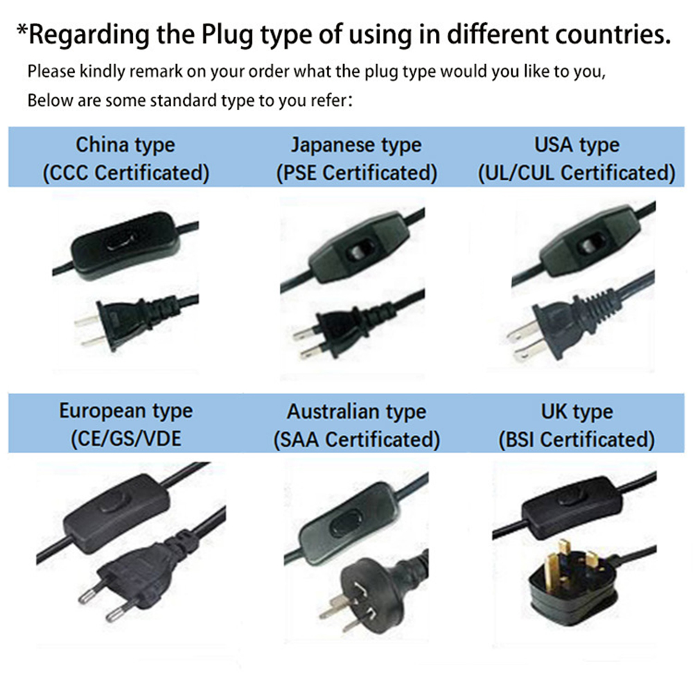 [Socket] You do not have to worry about the specifications of plugs and lamp holders, we can provide the electrical requirements and plug requirements of various countries in the world, we will send the electrical requirements suitable for your country according to your address.