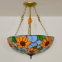 Blivuself Tiffany Style Stained Glass 20 Inch Light Blue Upward Chandelier European And American Retro Style Suitable For Living Room, Dining Room, Bedroom, Bar And Other Indoor Home Decoration 20 Inch Blue Sunflower - New Buckle Ring Upward Chandelier OFP1126